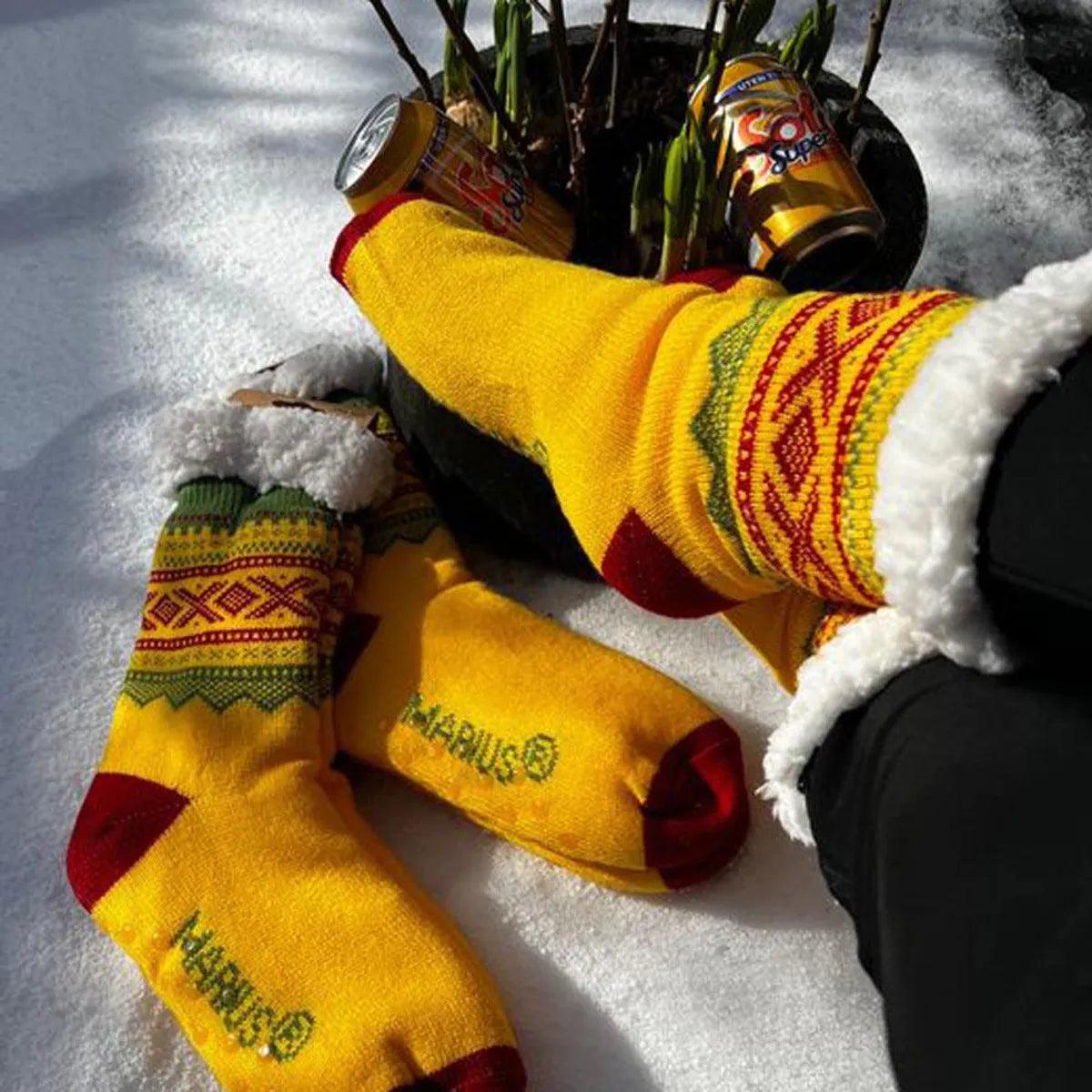 Mjuke deilige kosesokker med det populære Mariusmønsteret.