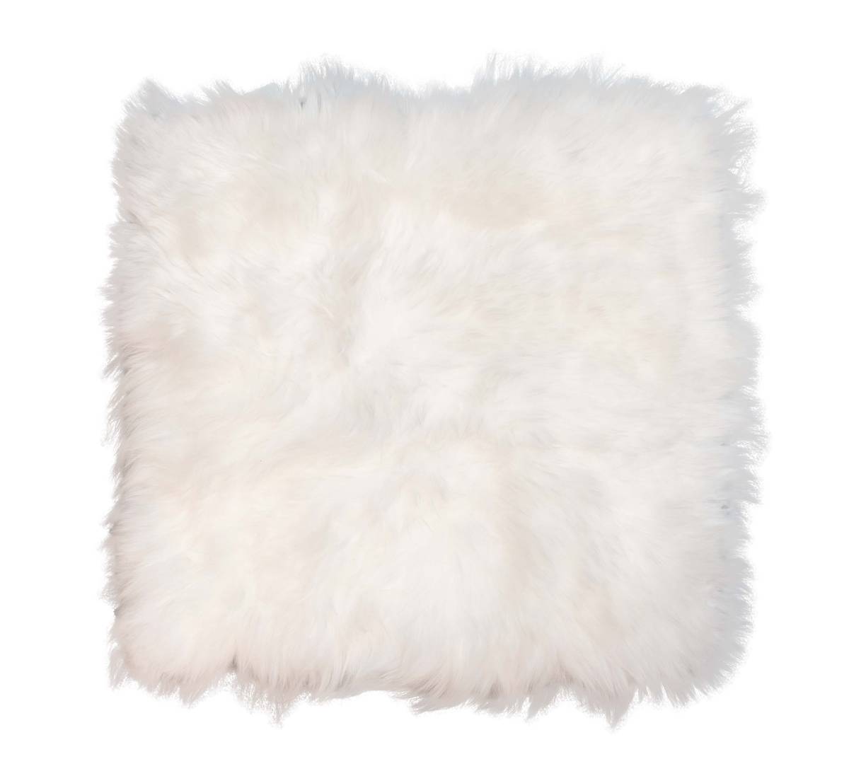 Mjukt og varmt sitteunderlag i kvitt, ekte saueskinn.