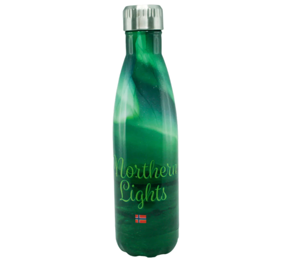 Holder varm drikke varm og kald drikke kald. Flott flaske til turen i nordlysets farger!